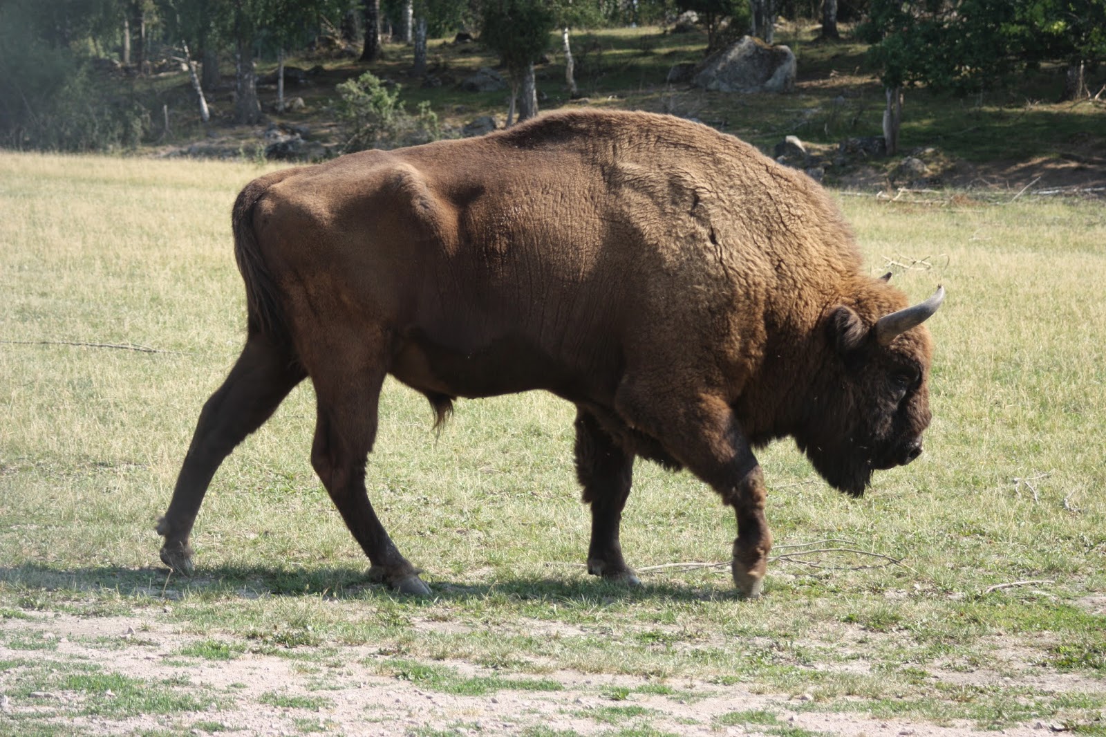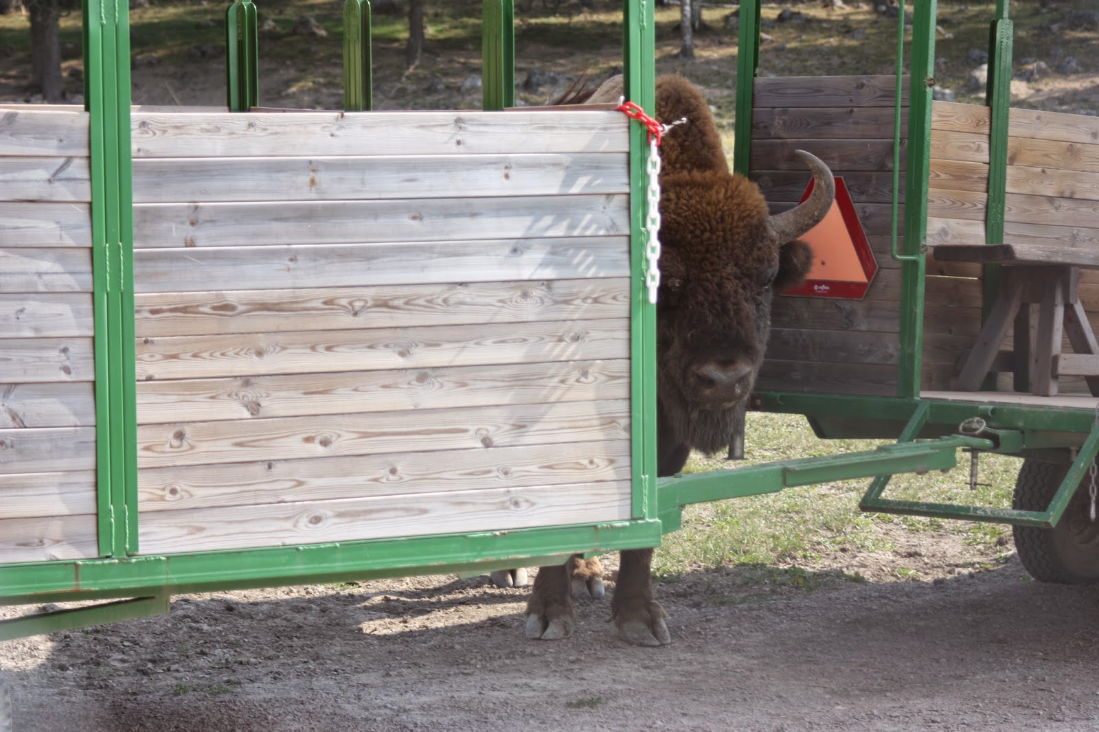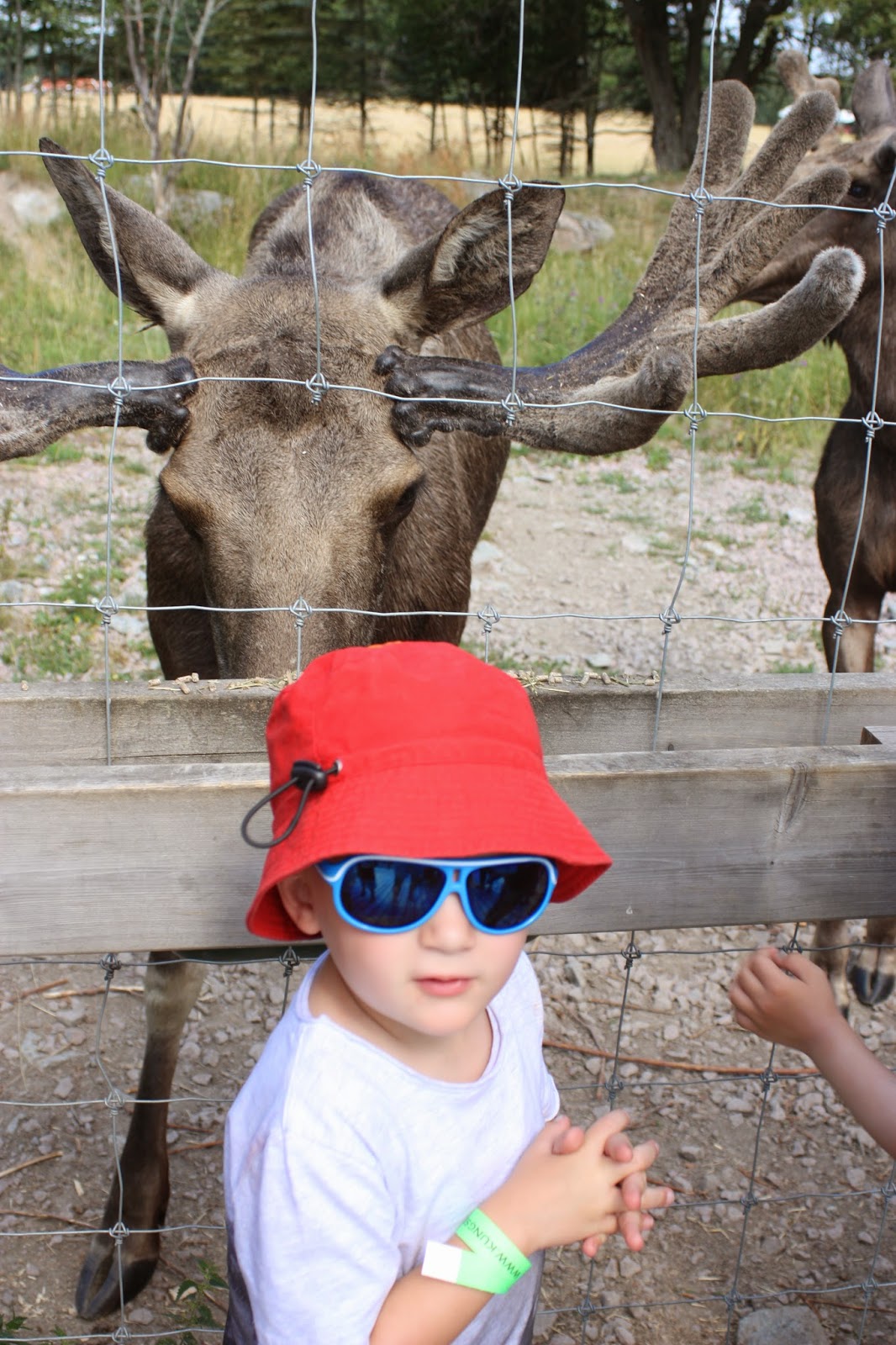 I söndags lånade vi bilen av farmor och farfar och åkte på dagsutflykt till Kungsbyns djurpark som ligger lite hitom Västerås. Det är en djurpark med "djur i människans tjänst" som de kallar det. Dels hade de en del lantraser av får, grisar, hönor, men också visenter, kronhjort, dovhjort, älgar, vildsvin, Herefordkor mm. Man fick åka traktor med vagn för att mata älgarna och inne i hägnet med visenter och hjortar. De hade också ponnyridning, en lekplats, en klapphage och till Samuels stora förtjusning flera gamla traktorer som man fick provsitta och "köra".