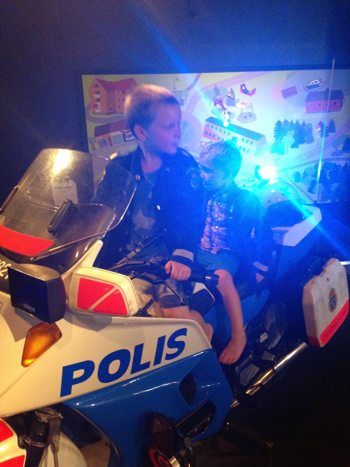 Onsdag förmiddag lekte vi hemma hos oss och vi fixade lite lunch. Därefter åkte vi till polismuseet där kusinerna åkte polisbil och motorcykel, jagade bovar, provade fängelset mm. Mycket populärt!