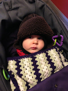 Kommer inte ihåg om jag har publicerat det färdiga resultatet av den provlapp jag virkade och som sedemera blev en babyfilt med mormorsränder till Elias. Det är ju ett år sedan jag höll på med det vilket känns smått otroligt. Filten är virkad i ett ullgarn och har använts flitigt, inte minst nu under vintern.
