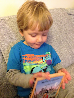 Det är titeln på den bok Samuel hade med sig hem från Junibacken i fredags. Hela veckan har vi läst Skrotnisse och Sagan om det röda äpplet som han redan hade. I samband med det pratade vi om Junibacken där de har Jan Lööf-tema just nu så i fredags när Samuel var ledig åkte han och Markus dit. De tillbringade några roliga timmar där och kom som sagt hem med en ny bok som vi sedan dess läst ungefär tjugo gånger (det är inget skämt och ingen överdrift!). Varken jag eller Markus har något emot det, vi tycker det är så roligt att han gillar böcker och det är himla mysigt att läsa tillsammans. Nu går han runt och låtsas att han har en sjörövarkostym på sin vind (som är vår garderob).